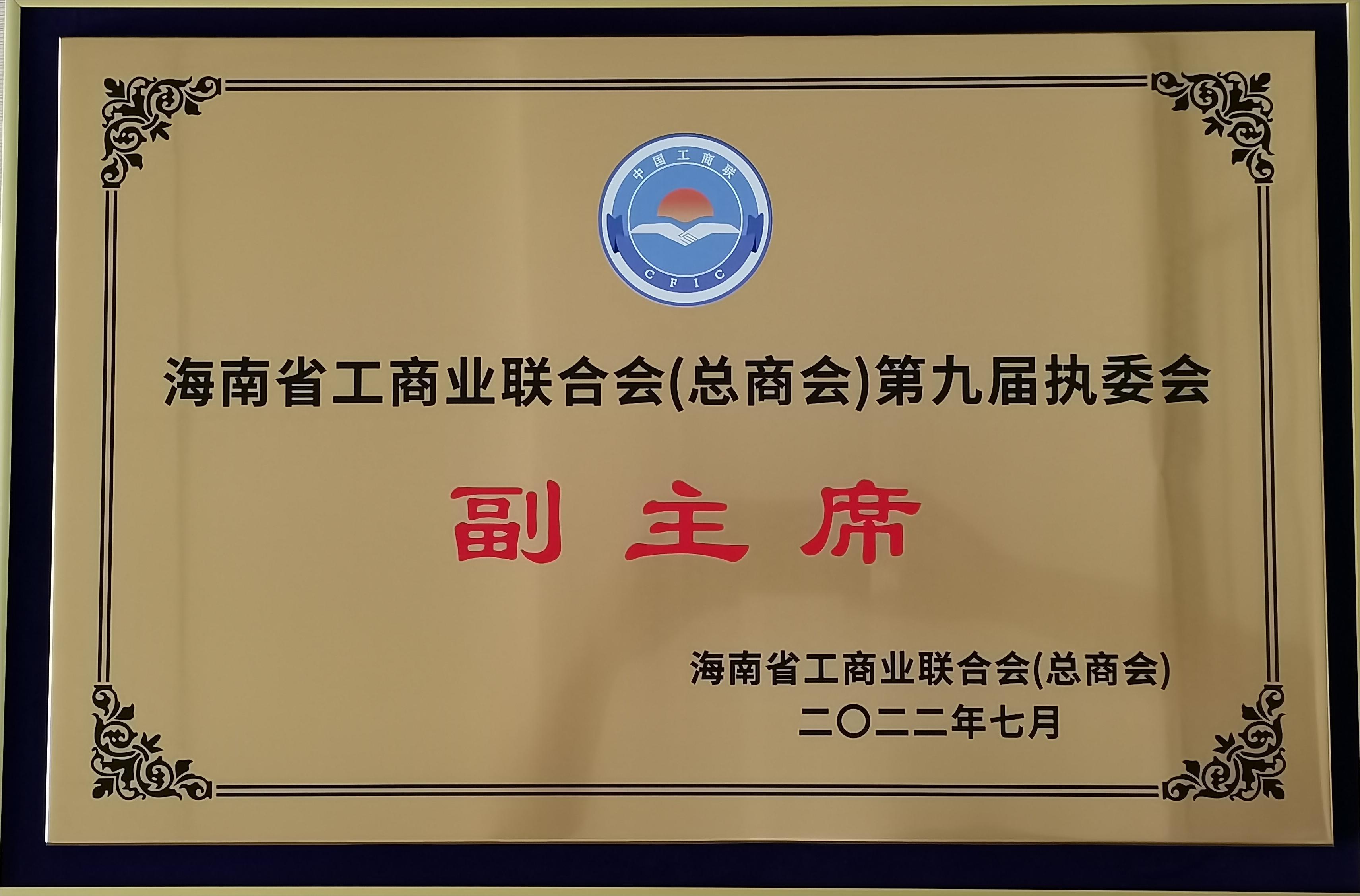 最后,林書記向陳董連任海南省工商業聯合會(總商會)第九屆執委會副主席表示祝賀,并頒發了牌匾。