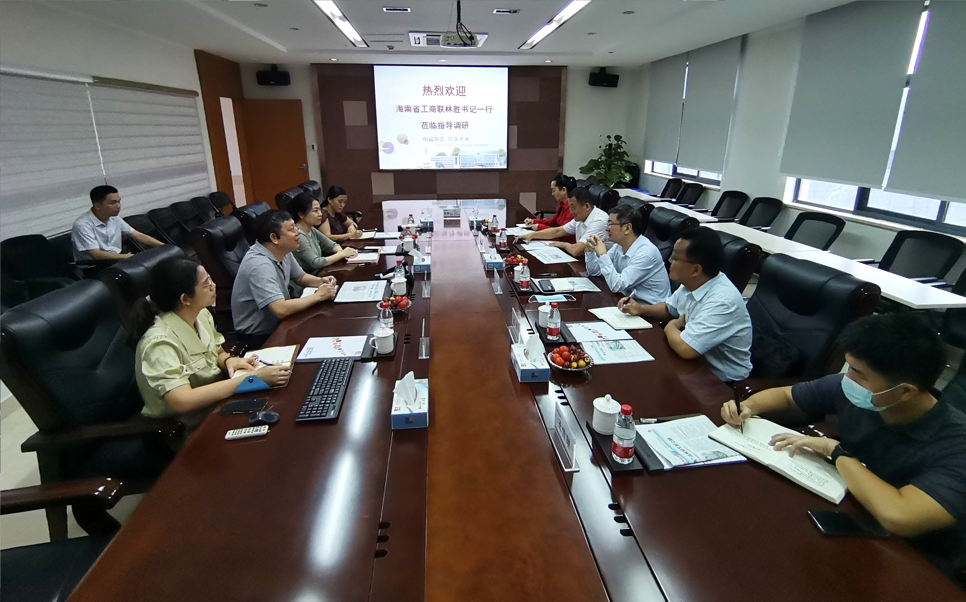 2022年9月28日上午,省委統戰部副部長 、省工商聯黨組書記林勝一行走訪調研我司,重點了解企業生產經營、復工復產情況并頒發海南省工商聯副主席牌。