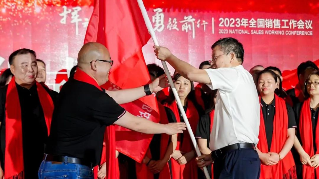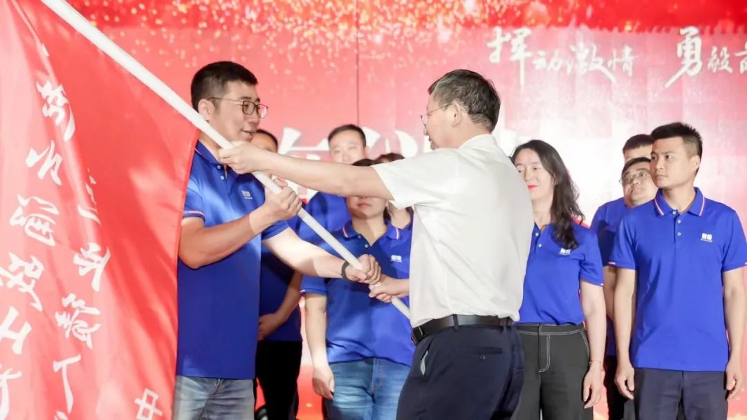 公司根據產品結構和市場實際,重新調整了營銷總監分工,成立了北部、中部、南部三個戰區,使管理垂直、效率更高、責任更明。董事長、總經理陳益智為三個戰區授旗,大家紛紛表示,克服困難,勇毅前行,堅決完成公司制定的營銷目標。